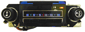 Die-cast Chrome faceplate *Fits your dash without any modifications! *4 X 45 watts RMS output allows up to 180 watts of audio power! *AM/FM "rollover" dial looks like original! *AM or FM band selected with slide-bar like original! *Analog controls look and feel like the original radio! *All controls easily accessible. Volume, bass, treble, balance, fader and tuning from original looking controls! *MP3, IPOD, CD or XM (satellite) inputs included! *Amber Stereo Indicator! Dial face lights Blue! *7/16 shafts for mounting exactly match original radio! *LED dial lights will never need replacing! *Digitally tuned AM/FM/Stereo front end provides stable, high quality reception! *European channel spacing optional! COMING SOON!