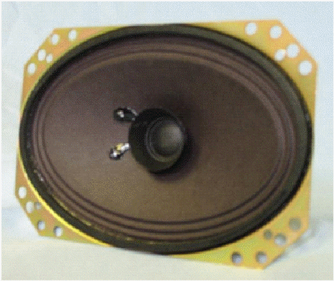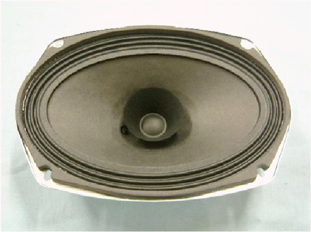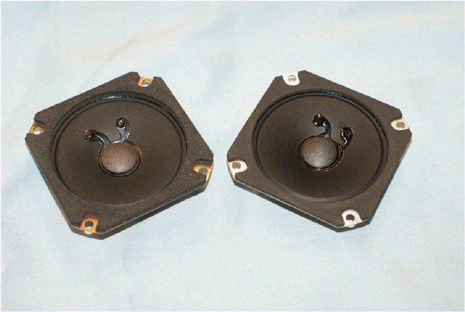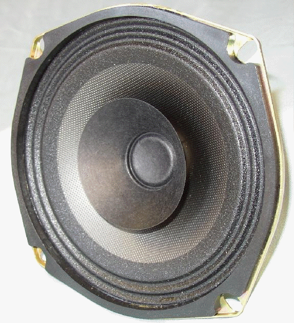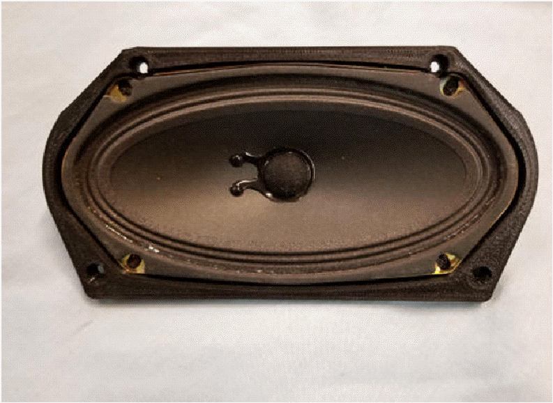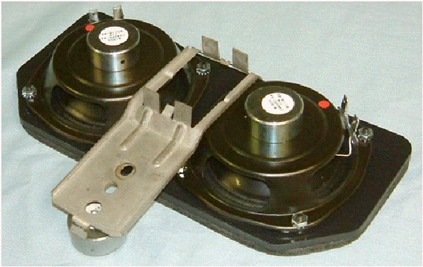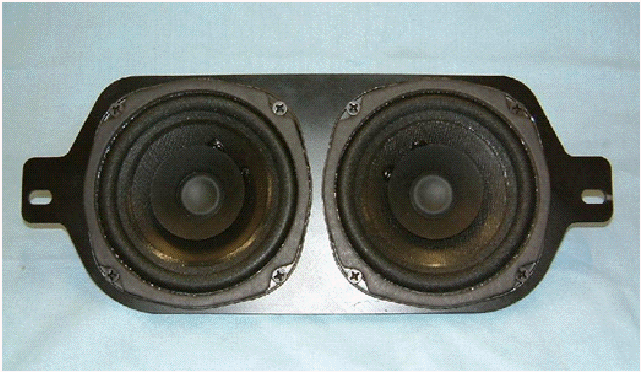 This speaker uses High-Q drivers and is mounted on an 11ga laser cut steel plate with a foam rubber gasket to match the mid 60's through early 70's Delco 4 x 10. It is very light, weighing just over 1 pound. Compare this to others using smaller drivers weighing over twice the weight. Available with 4 ohm voice coils suitable for use with our conversion and modern radios or with 8 ohm voice coils for those who wish to install original factory stereo radios in Chevrolet cars but do not wish to cut their kick panels for the original 4 x 6 speakers. Shown without included fabric dust screen for clarity. This speaker will mount as OEM and requires the original bracket in most cases. Price - $150 Cdn Both 4 ohm and 8 ohm available Size: 10 1/2"L x 4 3/4"W. 2 1/8" deep. No mounting centers - held in by bracket (not included - must use original).
