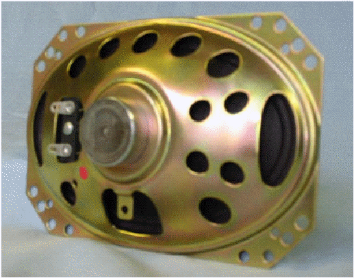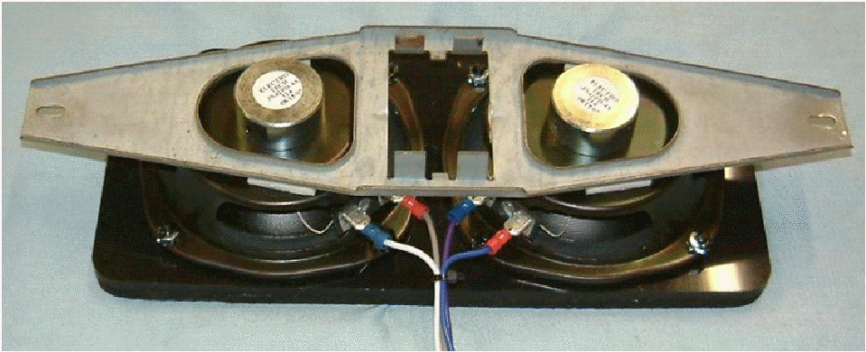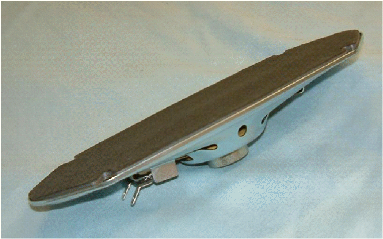 Shown with original Delco 68-69 Corvette speaker on top. Note the Corvette hanger hook opposite the terminals. ______________________________________________________________________ 4" x 10" Delco Style Special Rectangle -
